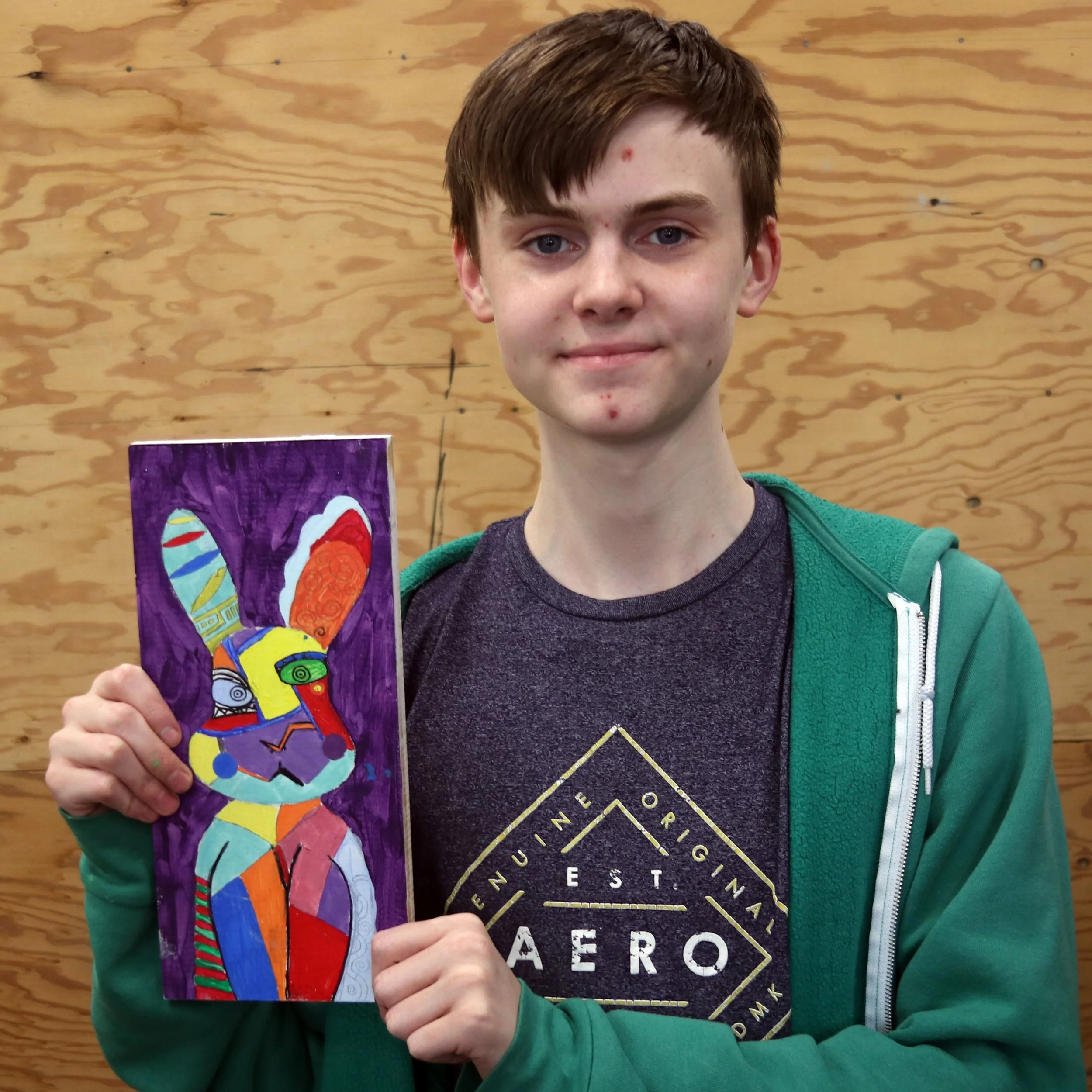 My name is Aaron Monroe Burrows, yeah that one. I know you're probably wondering how I ended up in this rabbit painting, well, I have one word for you, time machine. But that's a story for another time. For now, all you need to know is I'm 17 years old. I like Pokemon, Anime, Dungeons and Dragons, and other "nerd" stuff for lack of a better term. I hope you like this art piece, and whatever you do, DO NOT build a time travel machine!