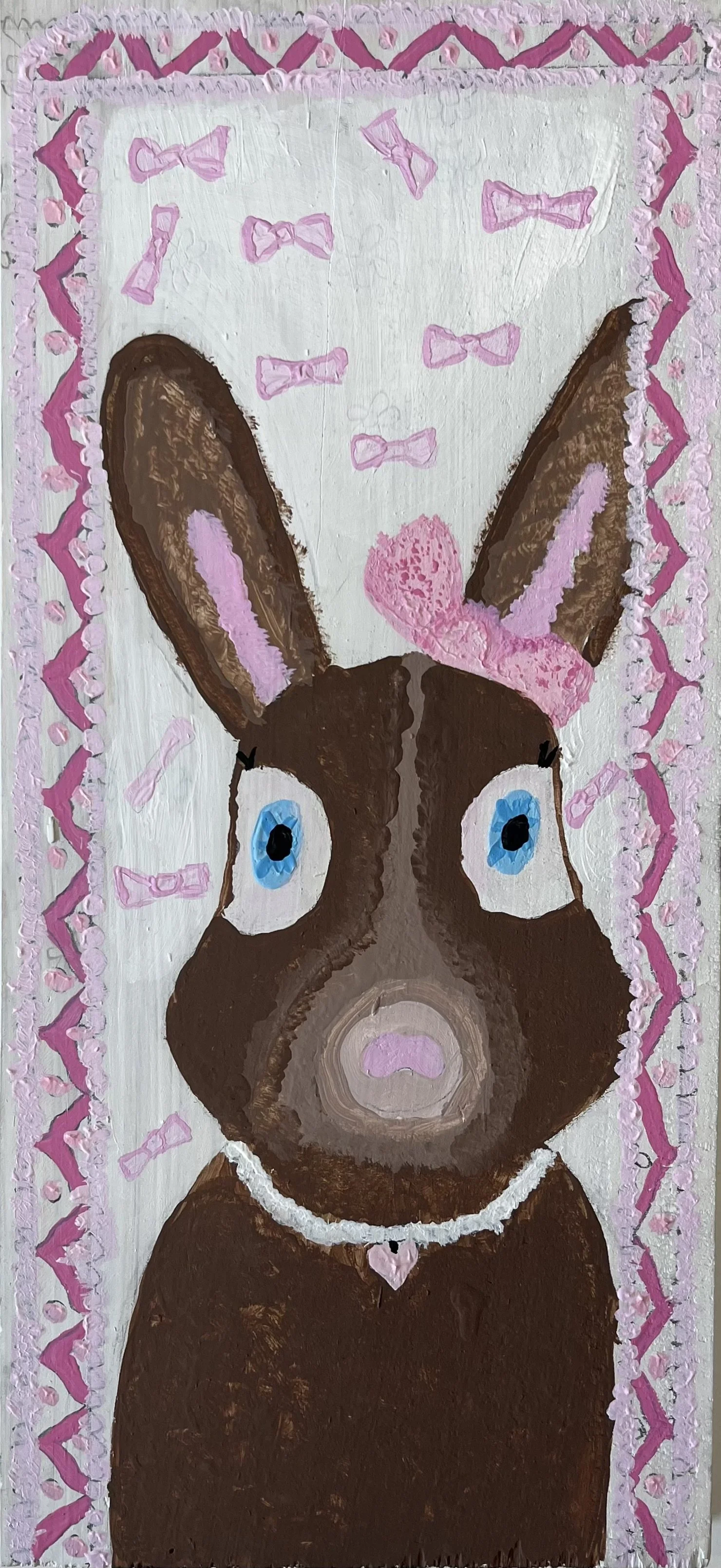 “Girl with White Rabbits,” a painting by Vitaliy Bondarenko. I worked to highlight how she used pastel colors and how she stuck to a main color group in the painting.