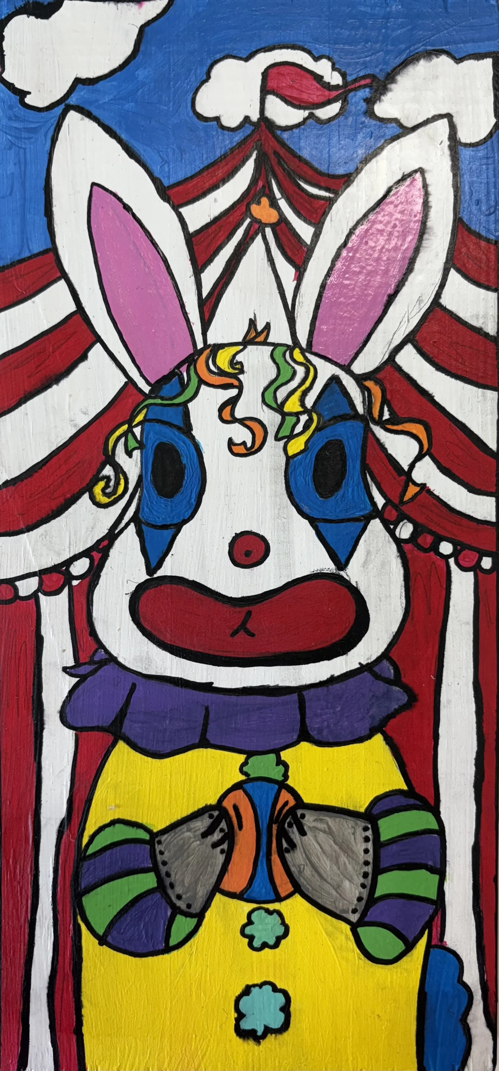No artist inspires the work of “The Rabbit's Circus.” Isabella started the rabbit out of fun, eventually deciding to do a duo with Carolina. They wanted to go for a clown theme, trying their best to just have fun and go with the flow!
