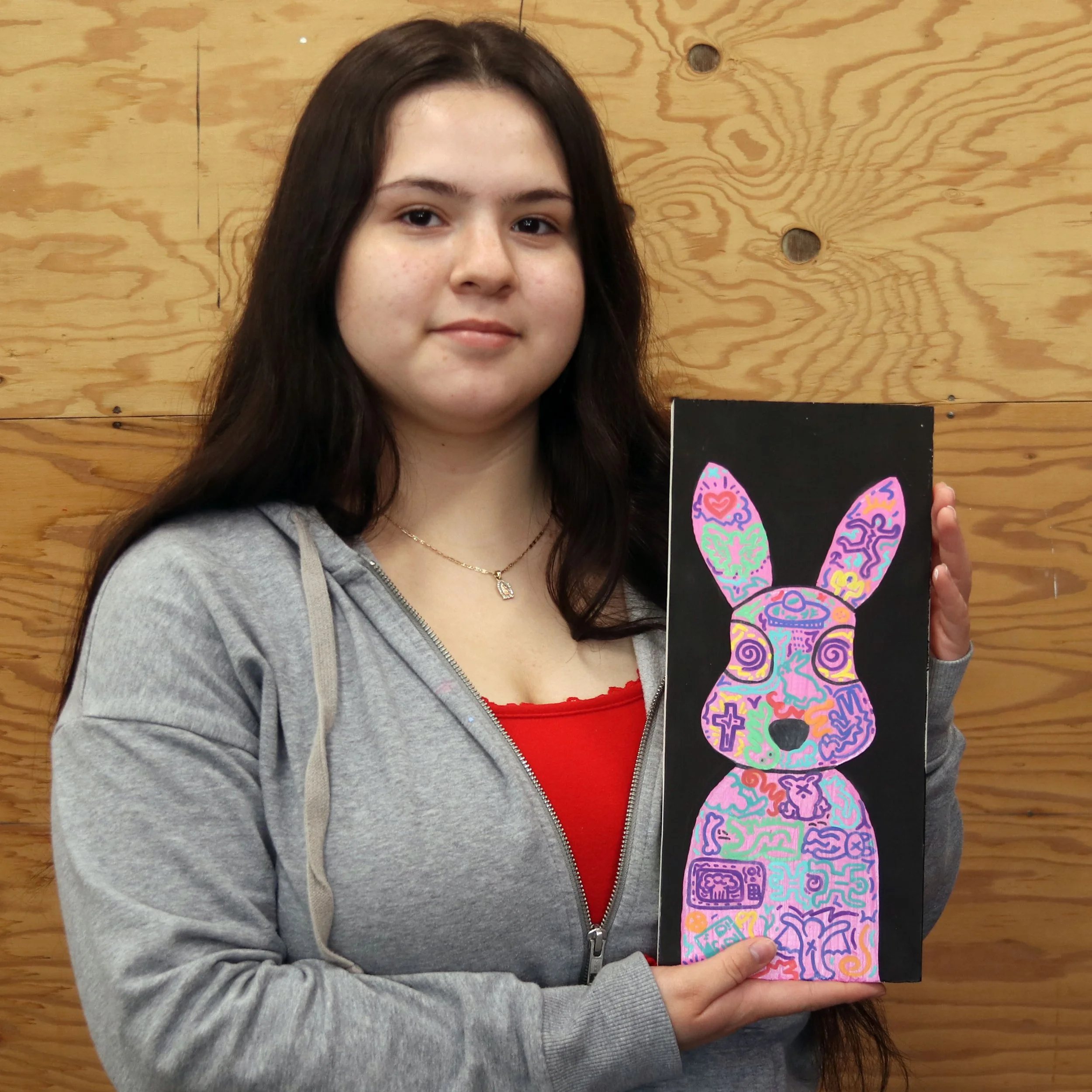Estoy en Arte 2 y en tercer año de preparatoria. Lo que más me gusta de crear arte es desafiarme a mí misma, probar cosas nuevas y superar mis límites para crear algo que no sabía que era capaz de hacer.